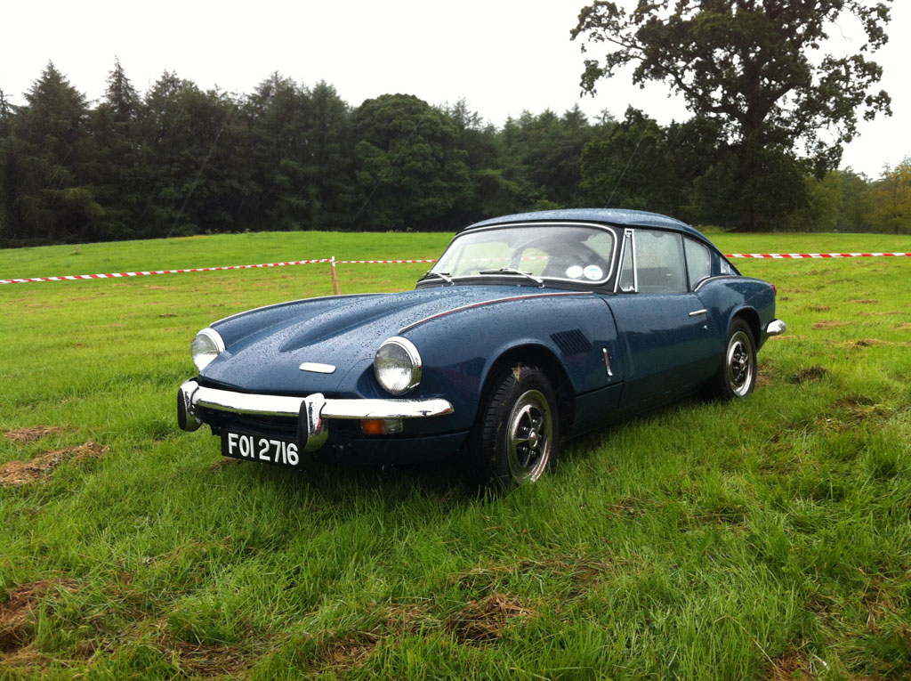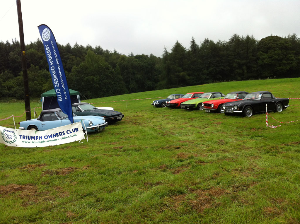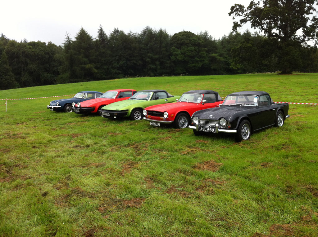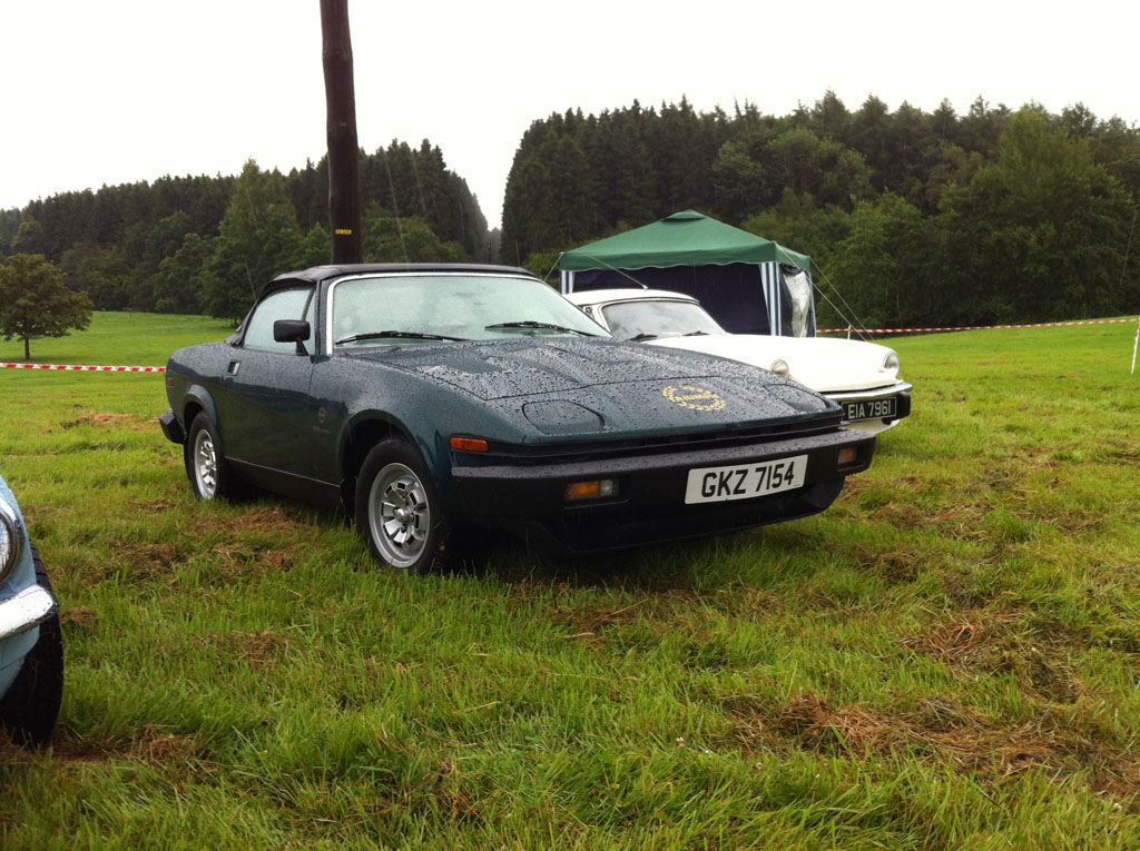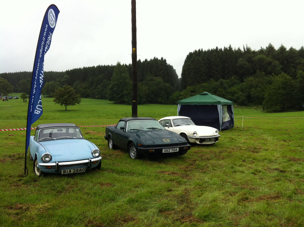 There is only one word to describe the conditions at Gosford Forest Park this year - a Washout. In the pouring rain we put up 1 gazebo and huddled into it for a cup of tea, scones and biscuits kindly supplied by Gerald and Mildred. In spite of the rain we had a good turnout of 8 Triumphs, 2 of which were on their first club outing after complete restorations. These were - a left hand drive TR8 owned by new member Wilber Montgomery, and a Mk2 GT6, owned by existing member Fleming McFarland (see photos). Both cars have been restored to a extremely high standard.